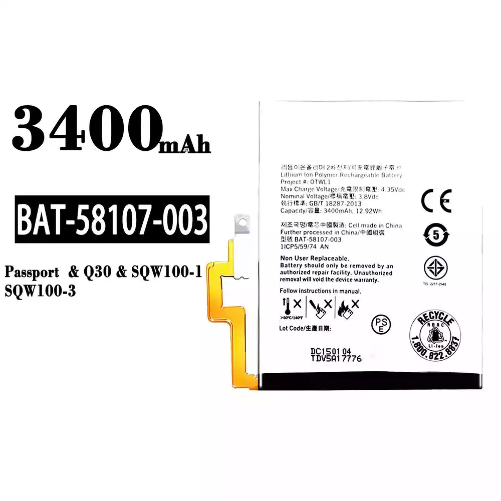 互換 バッテリー BAT-58107-003 対応 BlackBerry Passport/Q30/SQW100-1/SQW100-3