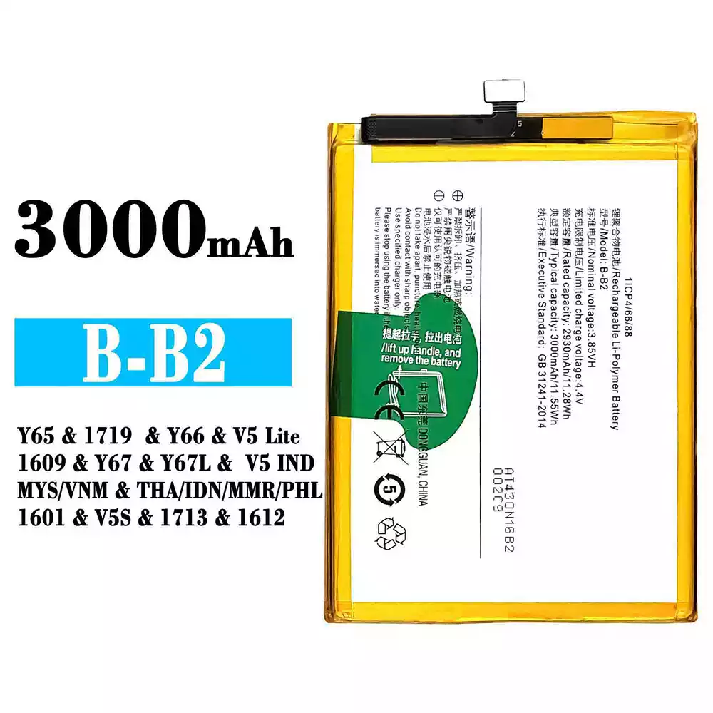 バッテリー B-B2 対応 VIVO Y65 / 1719 / Y66 / V5 Lite / 1609 / Y67 / Y67L / V5 IND MYS VNM / THA IDN MMR PHL 1601 / V5S / 1713 / 1612