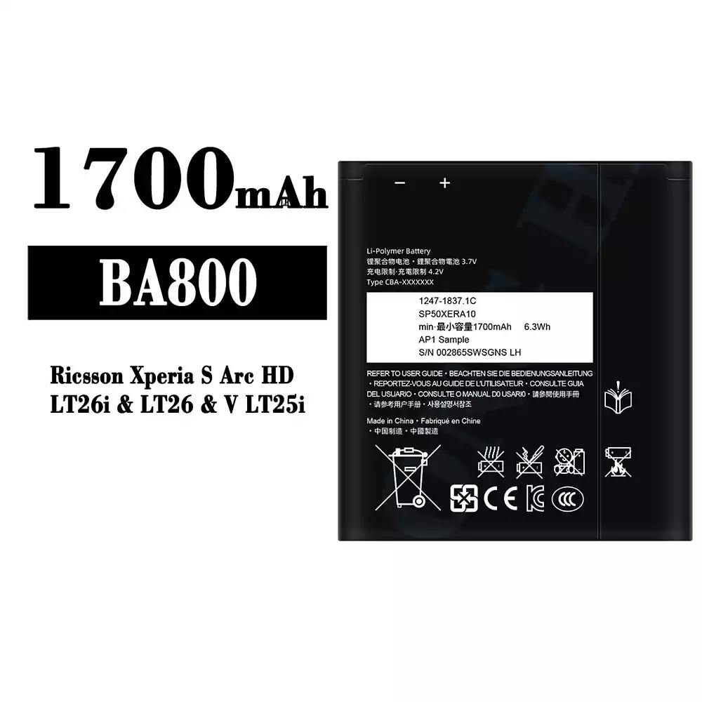 バッテリー BA800 対応 Sony Ricsson Xperia S Arc HD / LT26i / V LT25i / LT26