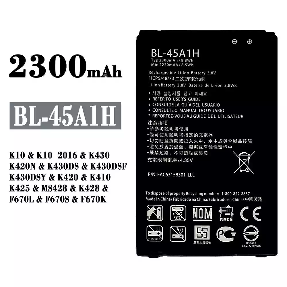 バッテリー BL-45A1H 対応 LG K10 / K10 2016 / K430 / K420N / K430DS / K430DSF / K430DSY / K420 / K410 / K425 / MS428 / K428 / F670L / F670S / F670K