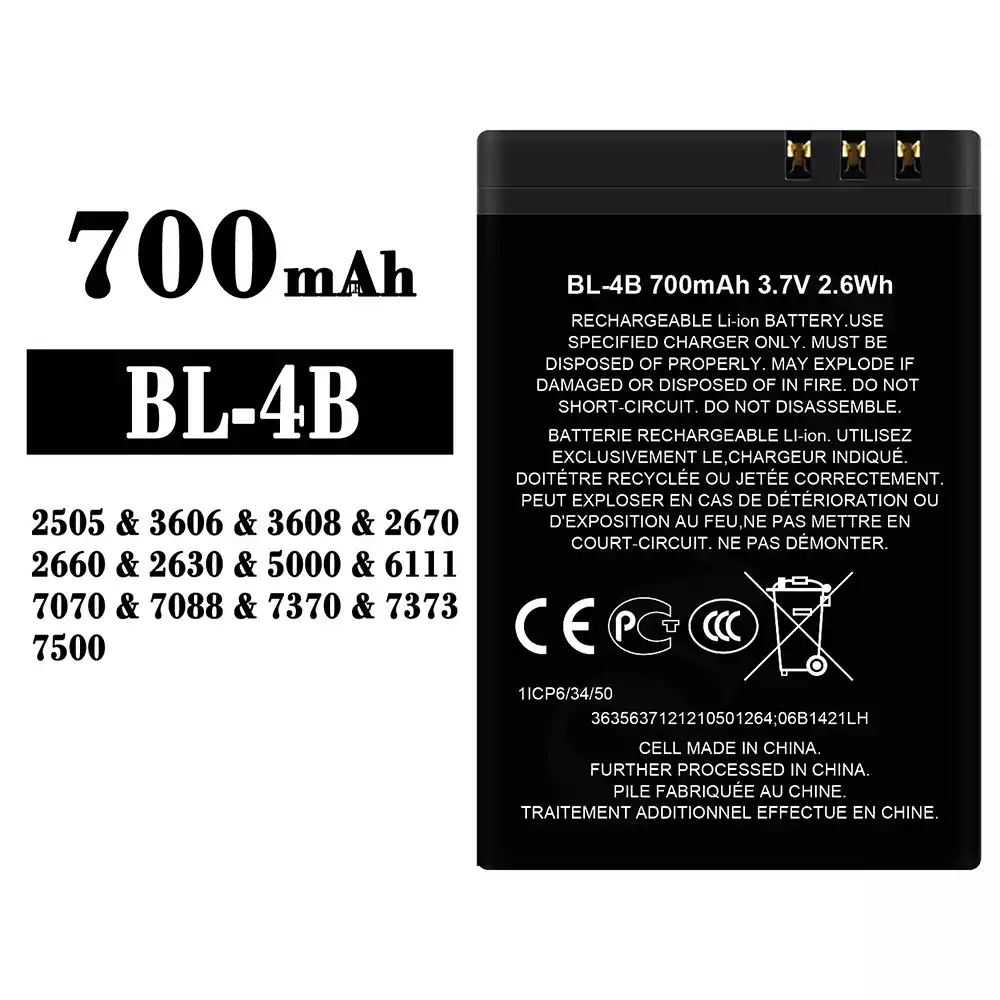 バッテリー BL-4B 対応 Nokia 2505 / 3606 / 3608 / 2670 / 2660 / 2630 / 5000 / 6111 / 7070 / 7088 / 7370 / 7373 / 7500