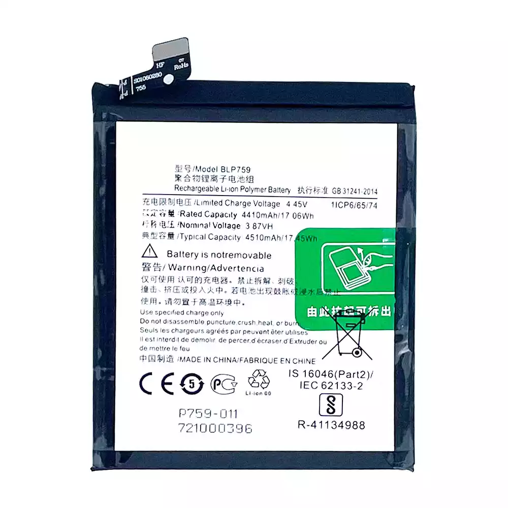 バッテリー BLP759 対応 OPPO 1+8Pro