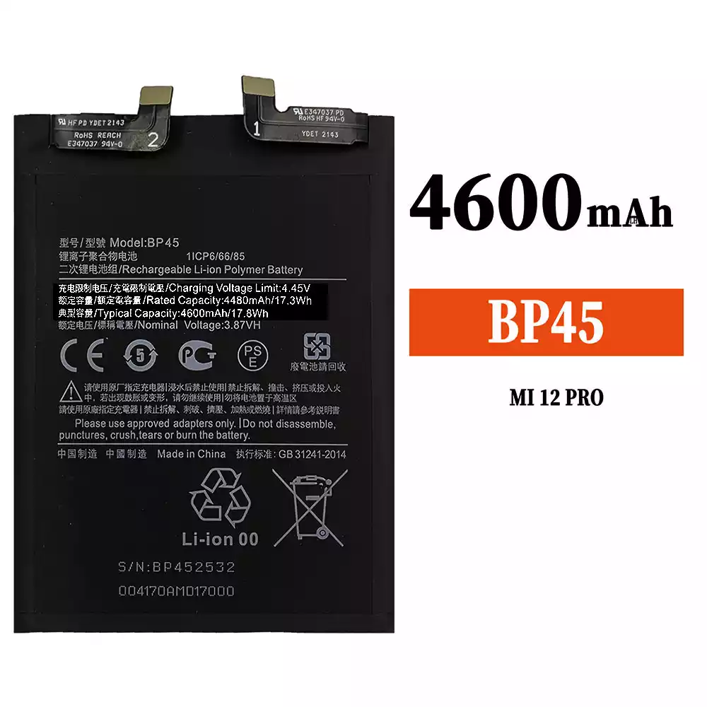 互換 バッテリー BP45 対応 Xiaomi MI 12 Pro