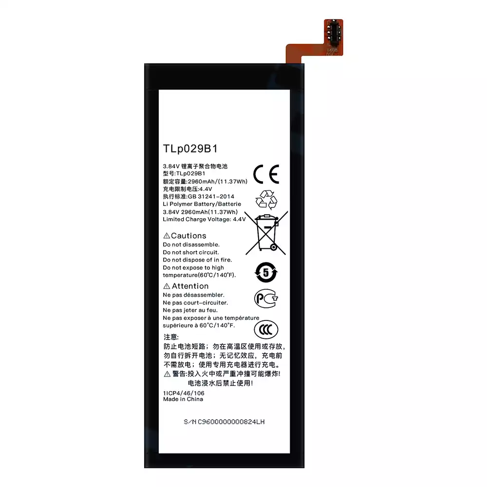 互換 バッテリー TLP029B1 対応 Alcatel Pop 4S