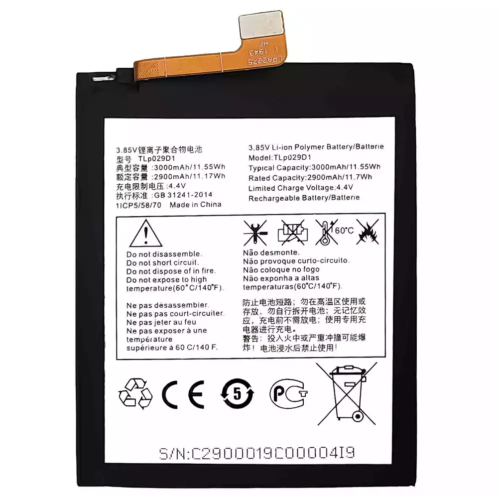バッテリー TLP029D1 対応 Alcatel 3 2018 / 0T-5052 / 5052D / 5052A / 5052Y / 5 / 0T-5086 / 5086D /5086Y / 5086A / 3L 2018 / OT-5034 / 3x 2018 / 0T-5058 / 50581 / 5058T / 5058Y / 5058A / 5058J
