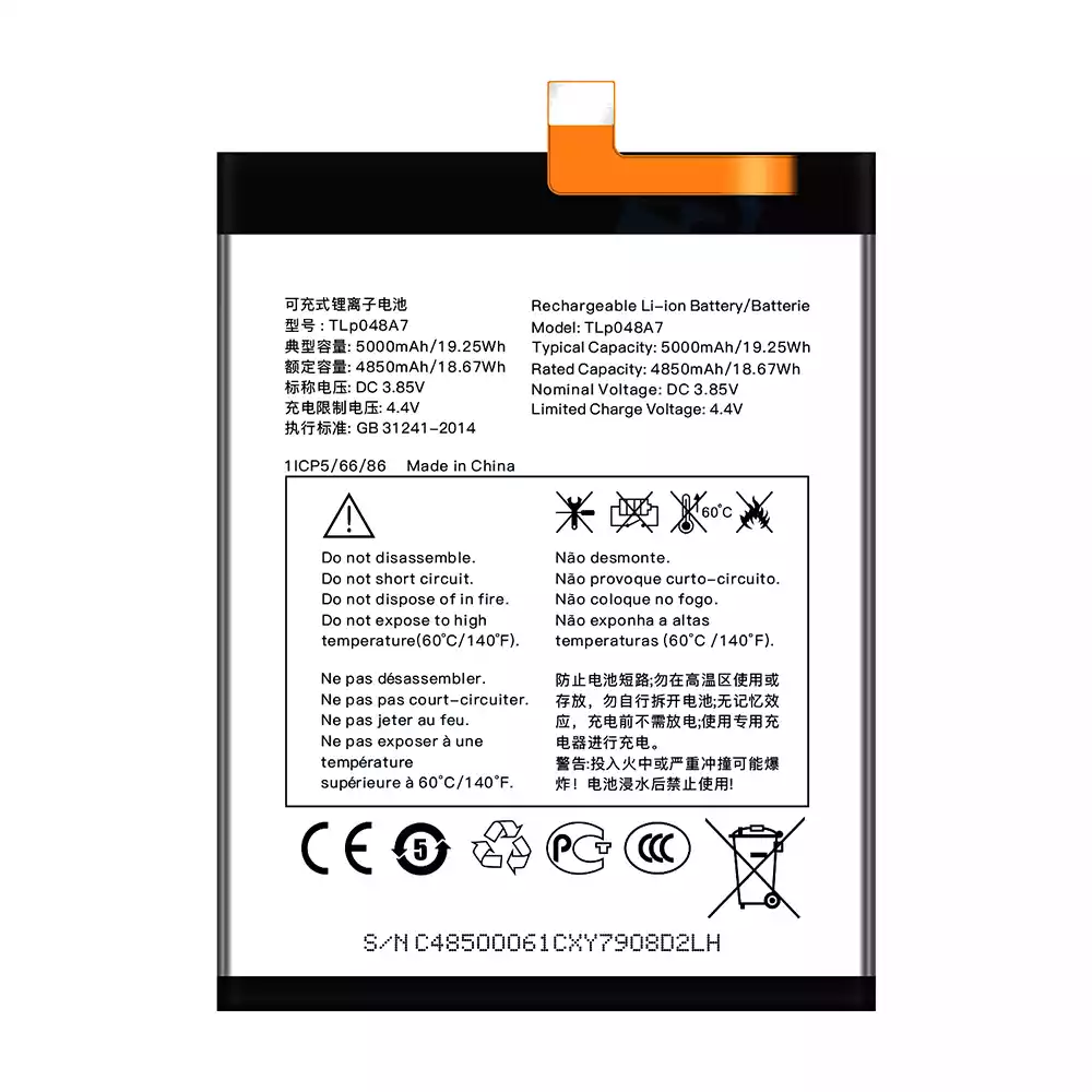 互換 バッテリー TLP048A7 TLP048A1 対応 Alcatel 20SE/30SE